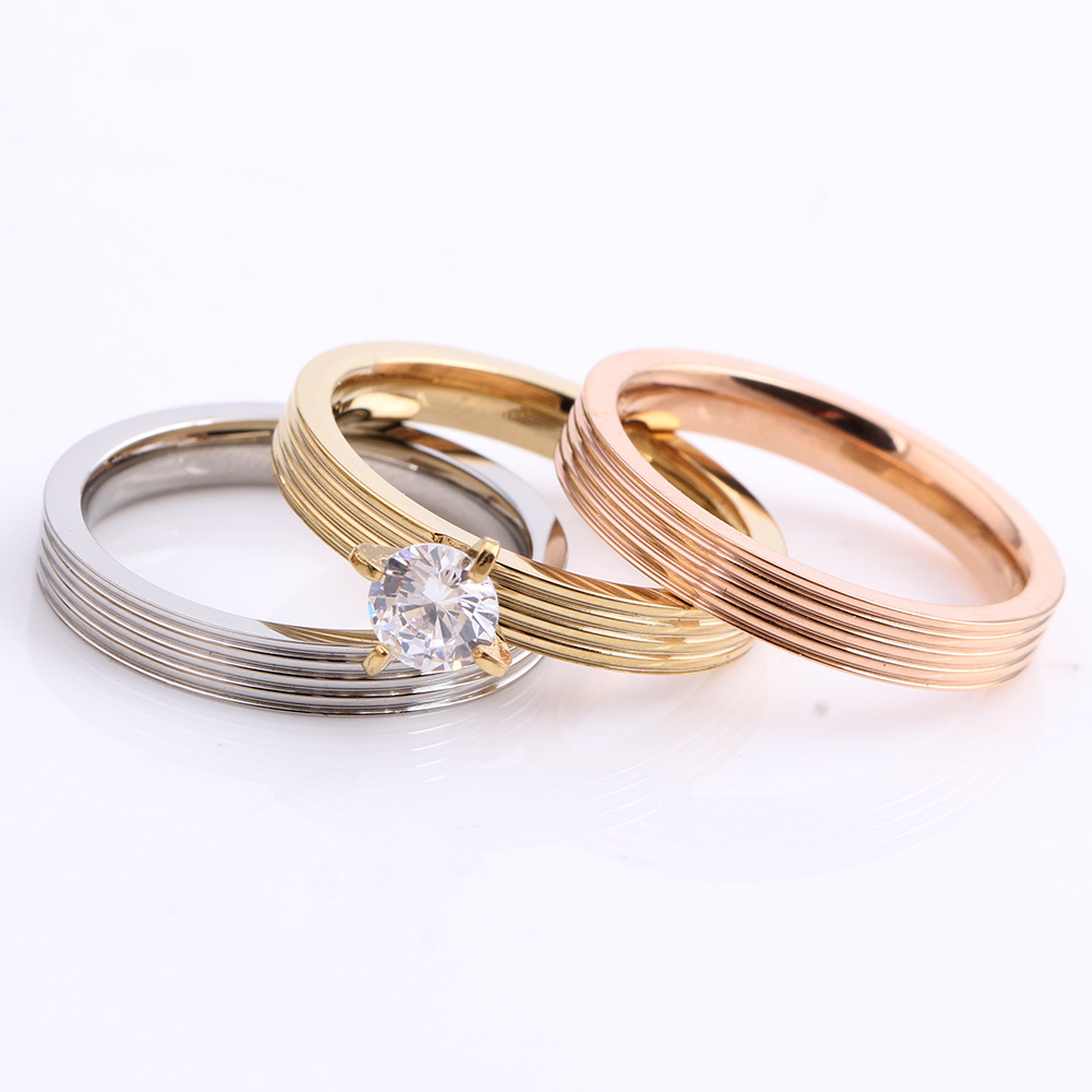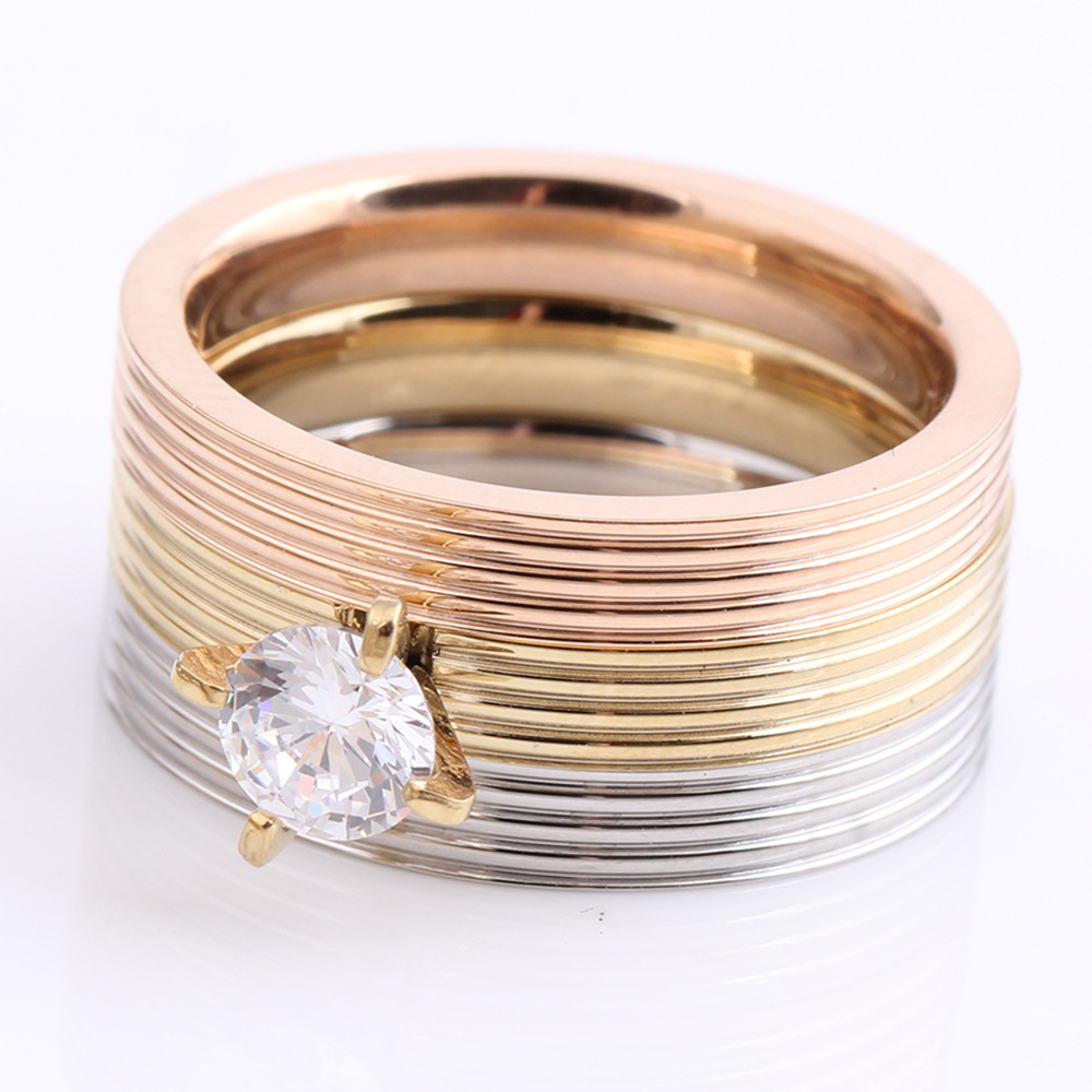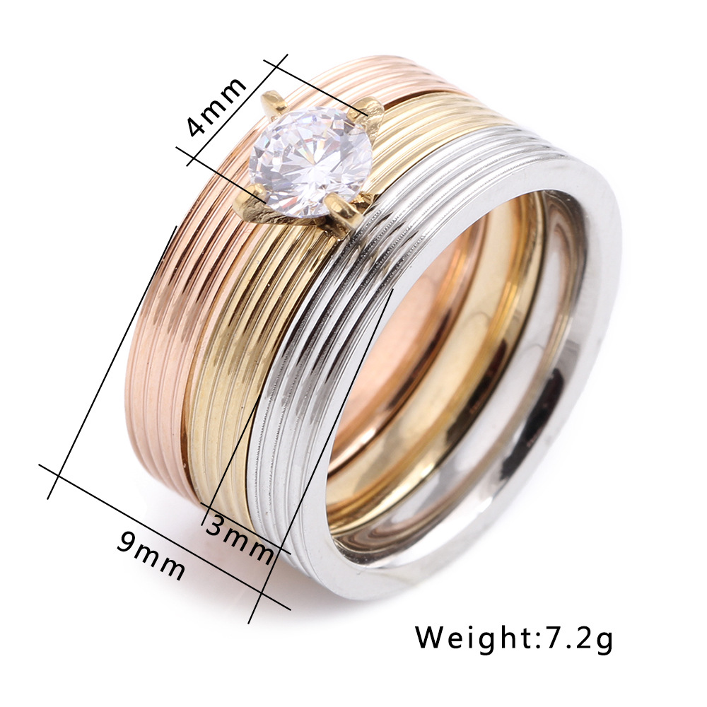 New Fashion Three-in-One three color inlaid diamond Titanium Steel Ring