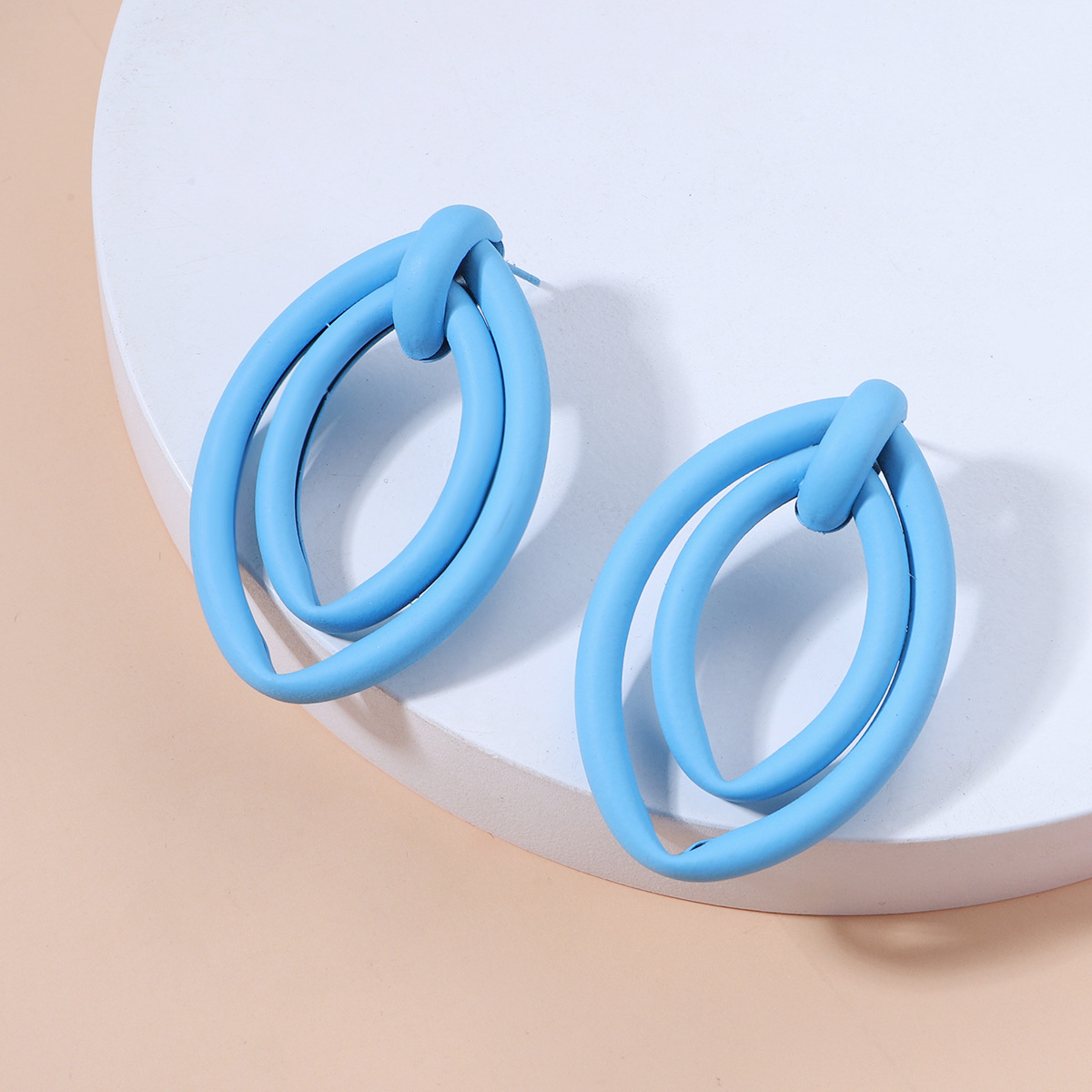 new frosted texture candy color multi-layer geometric stitching alloy earrings