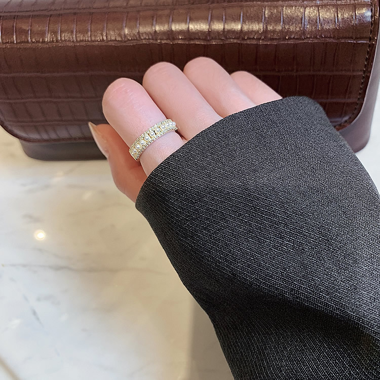 Real gold color-preserving electroplating diamond-encrusted pearl open alloy ring