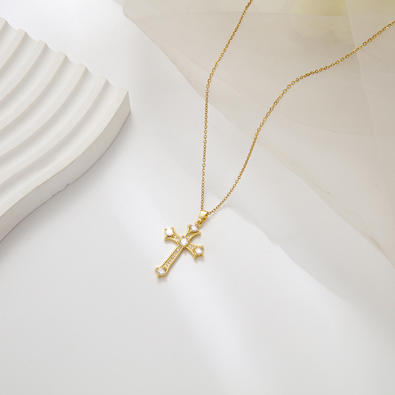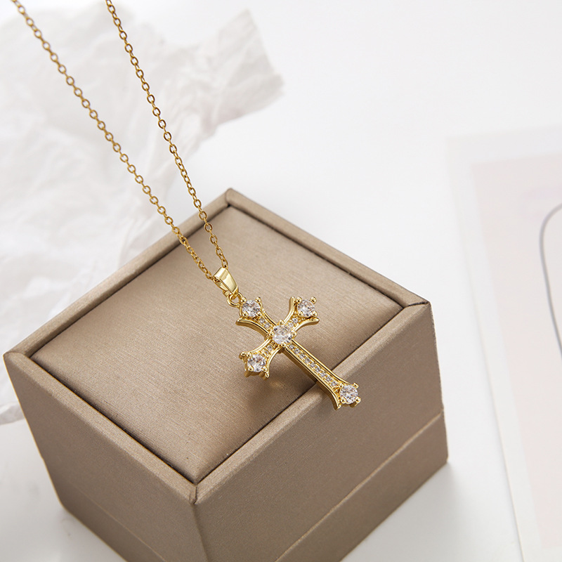Retro Cross Stainless Steel Inlay Rhinestones Necklace