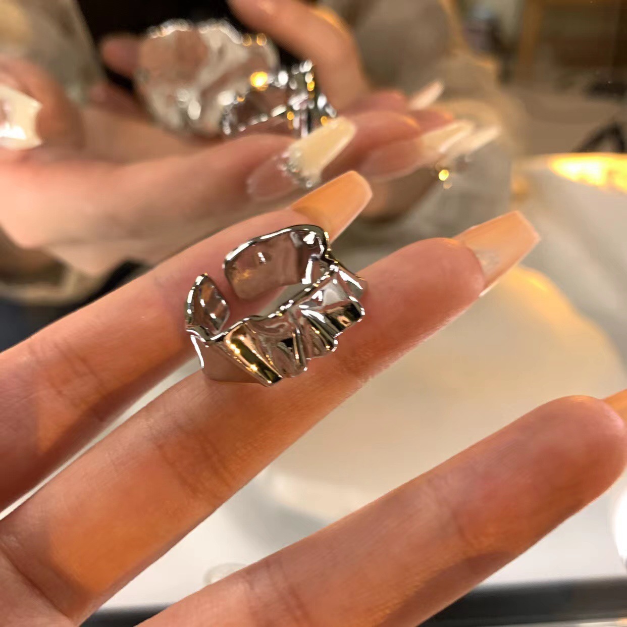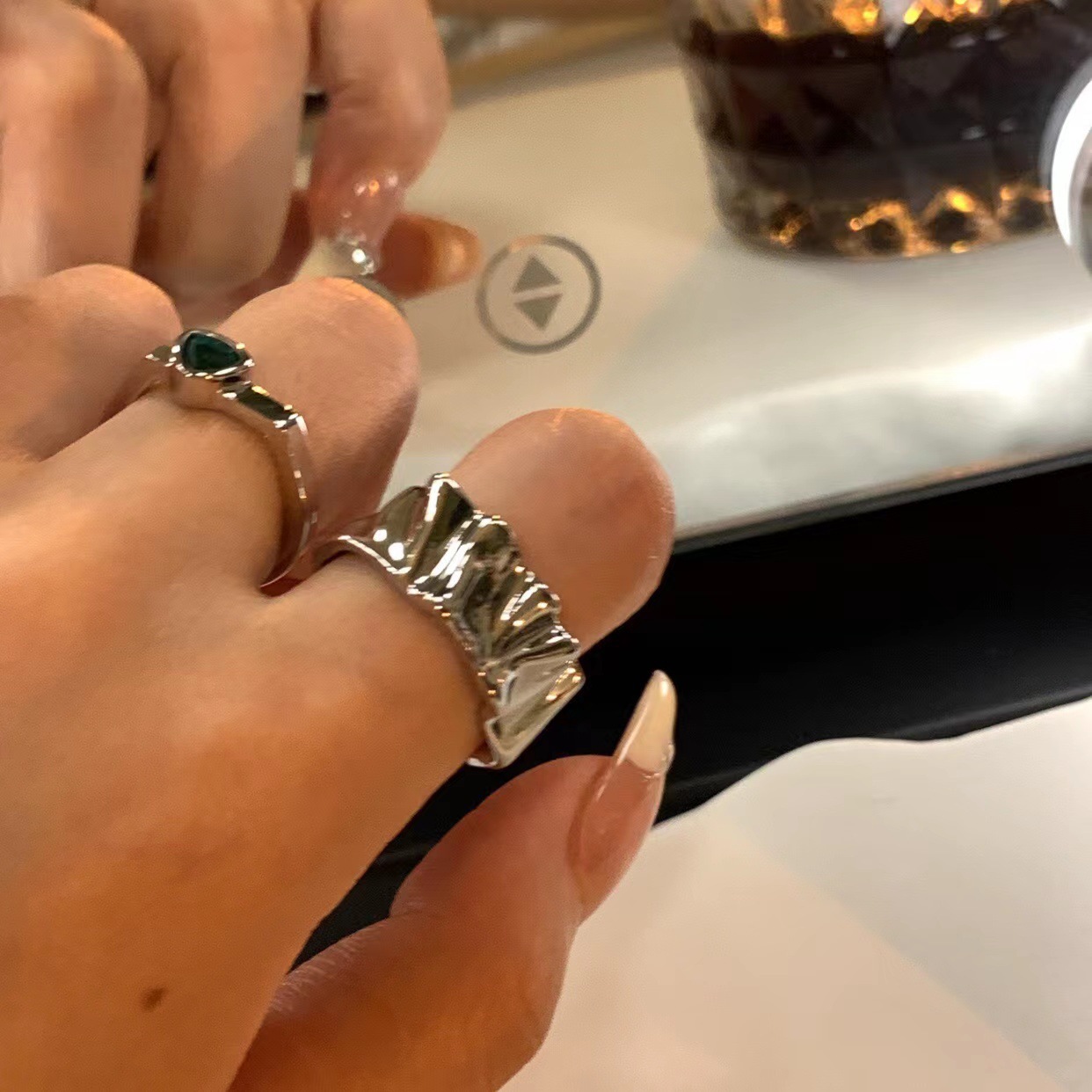 Retro Geometric Alloy Pleated Inlay Rhinestones Rings 1 Set