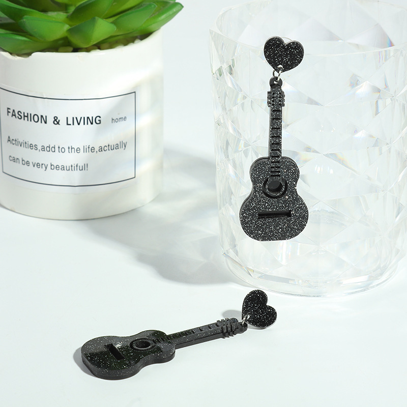 Retro Guitar Heart Shape Arylic Resin Enamel Womenu0027S Drop Earrings 1 Pair