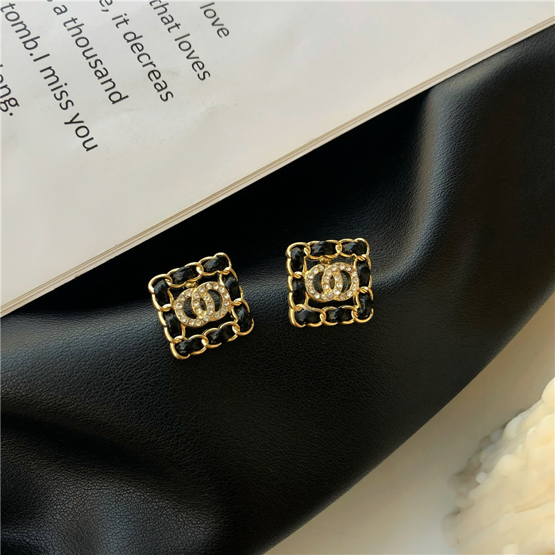 Retro Metal Chain Buckle Earrings Autumn Temperament Contrasting Color Stud Earrings