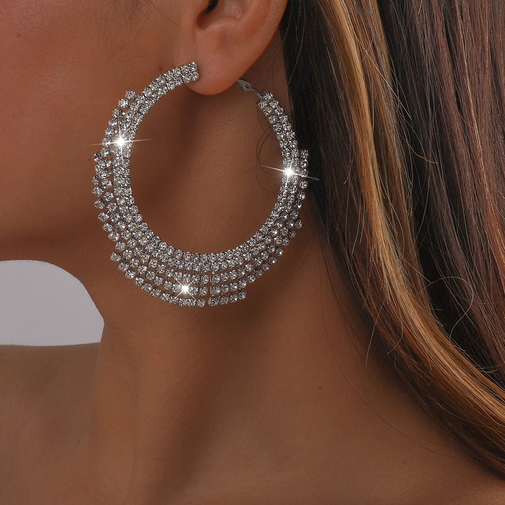 retro rhinestone tassel large circle claw chain earrings