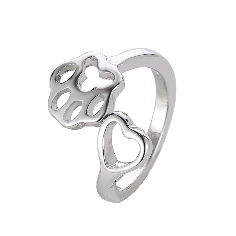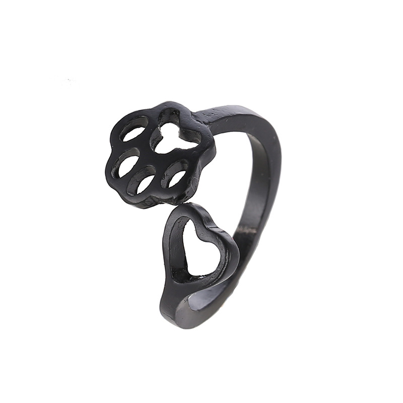 Simple cat paw dog paw ring hollow love dog paw print ring open tail ring