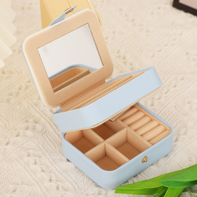 Simple Style Geometric Solid Color Pu Leather Flannel Layered Jewelry Boxes 1 Piece