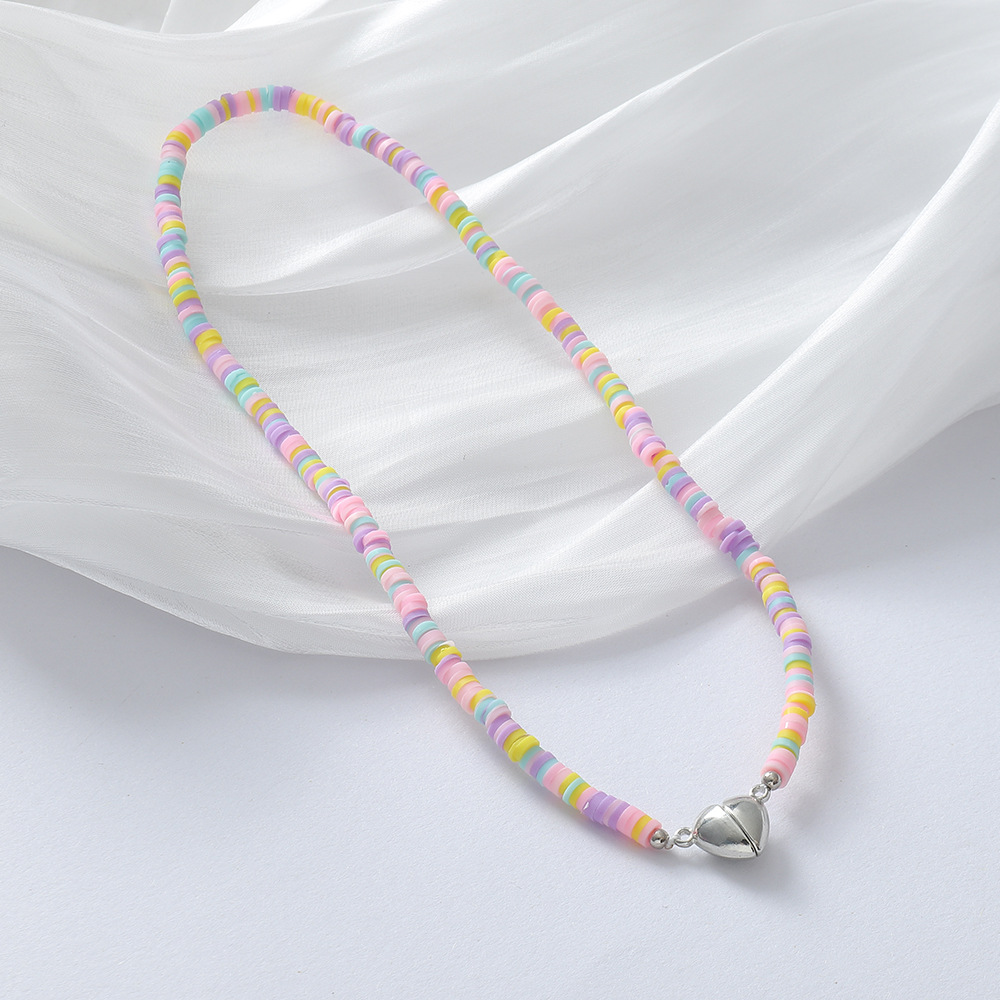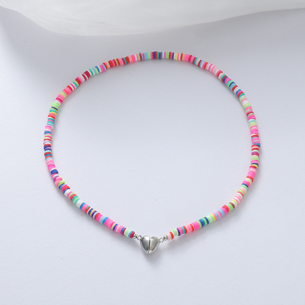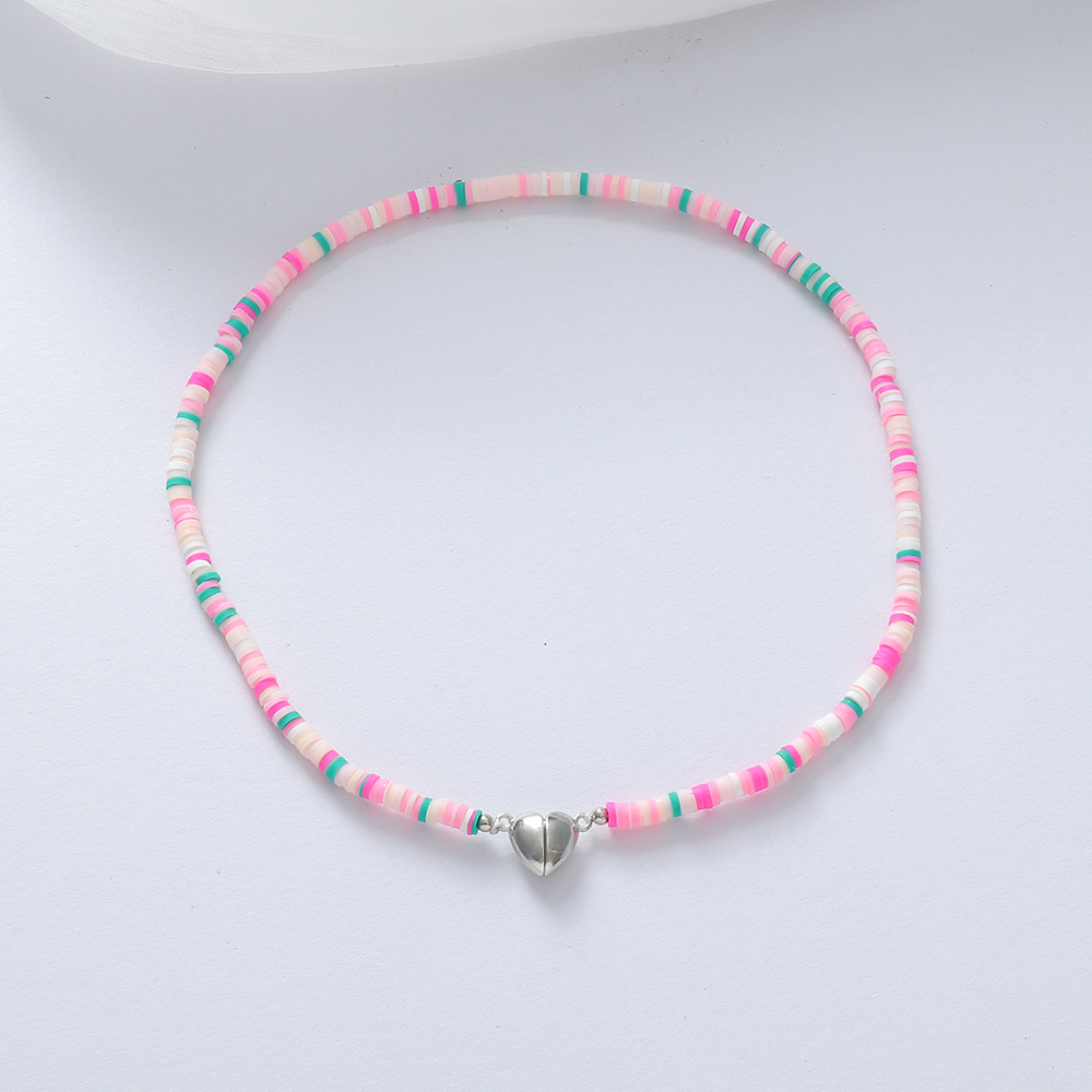 Simple Style Heart Shape soft clay Beaded Pendant Necklace