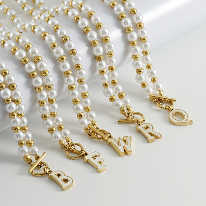 Simple Style Letter Imitation Pearl Titanium Steel Inlaid Shell Womenu0027S Necklace 1 Piece