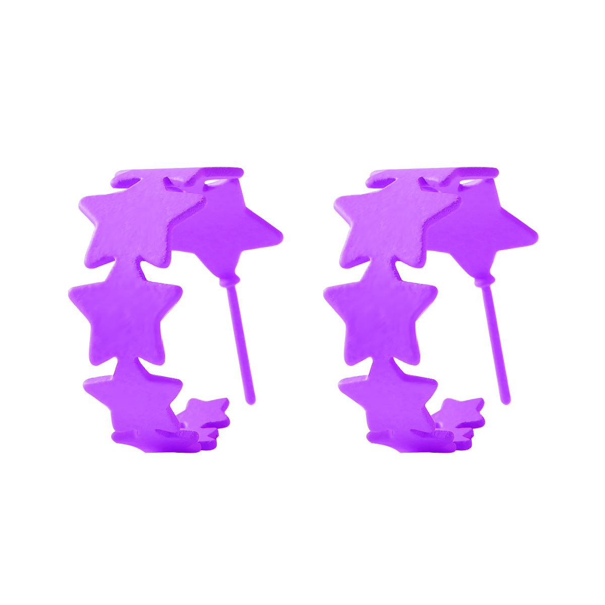 star fashionable metal texture rubber paint five-pointed star C-shaped earrings