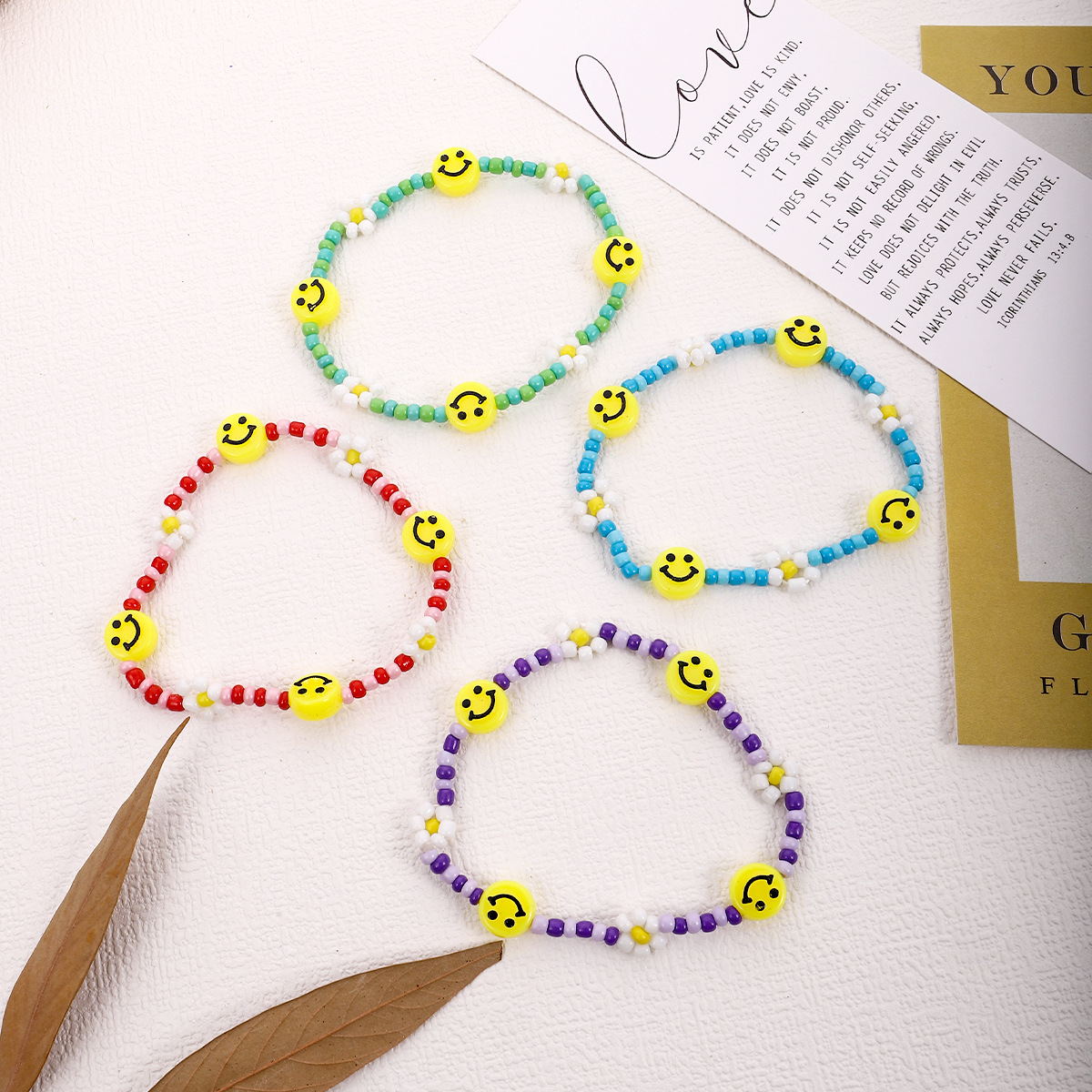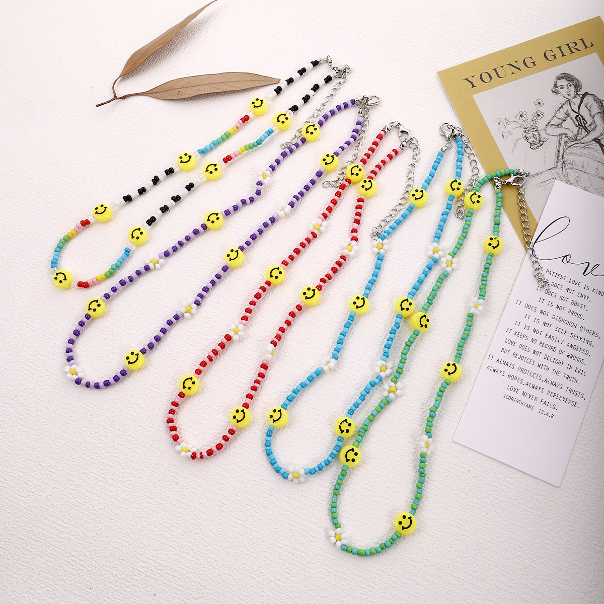 Sweet Smiley Face Flower Plastic Resin Beaded Flowers Resin Womenu0027S Necklace