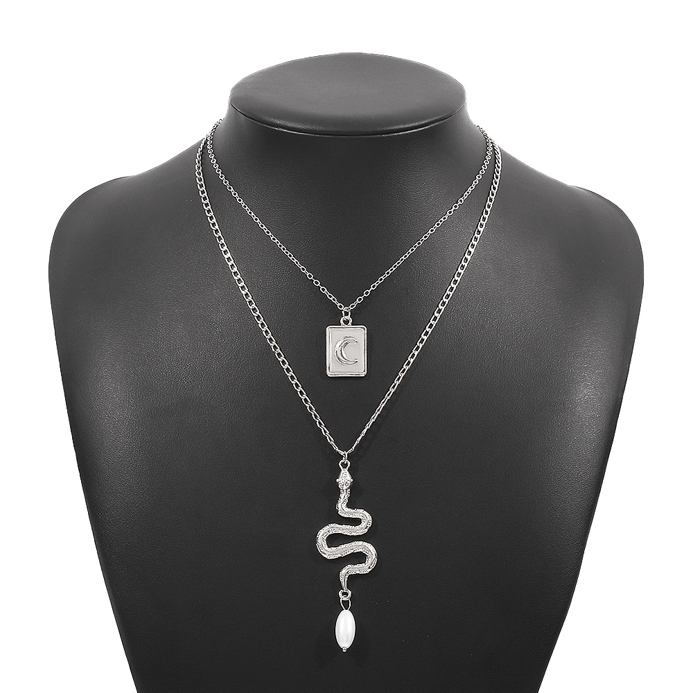 vintage double-layered geometric snake-shaped square pendant necklace