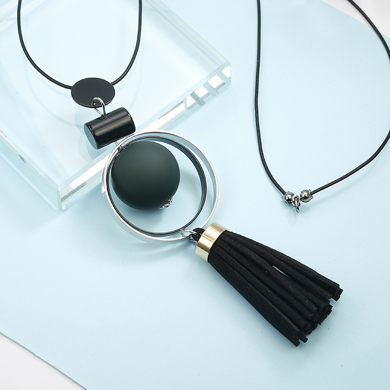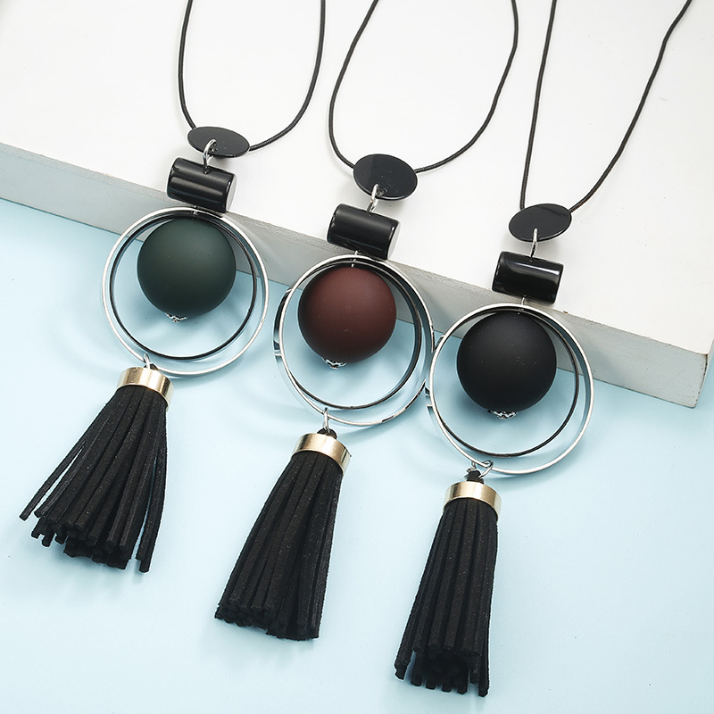 Vintage matte sweater chain tassel circle long paragraph chain accessory